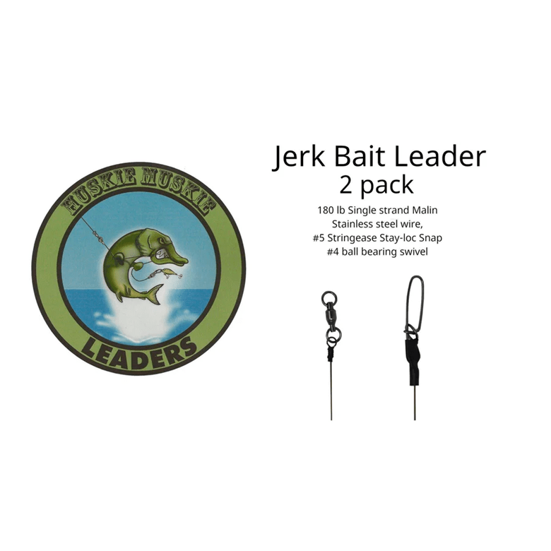 Our Jerkbait/Glide bait leaders are truly one of a kind. Constructed on 180lb Stainless steel straight single strand wire. Comprised of only the finest components from Stringease. Each end is bent by hand. We take extra precaution and heat shrink the cut point of each end. And finally a larger portion of heat shrink to secure the snap in place. Very helpful for working a side to side or dive and rise type bait.